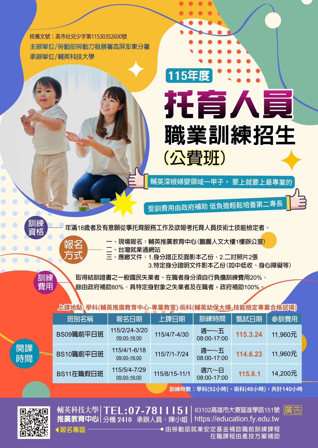 詳情請聯繫我們的服務專線 07-7811151-6810、2410_陳小姐,歡迎加入中心line@官方群組,有效掌握最新課程訊息喔!