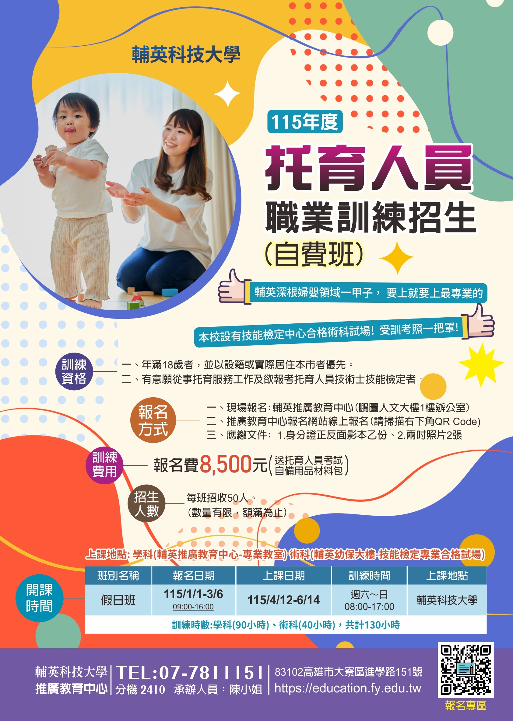 詳情請聯繫我們的服務專線 07-7811151-6810、2410_陳小姐,歡迎加入中心line@官方群組,有效掌握最新課程訊息喔!